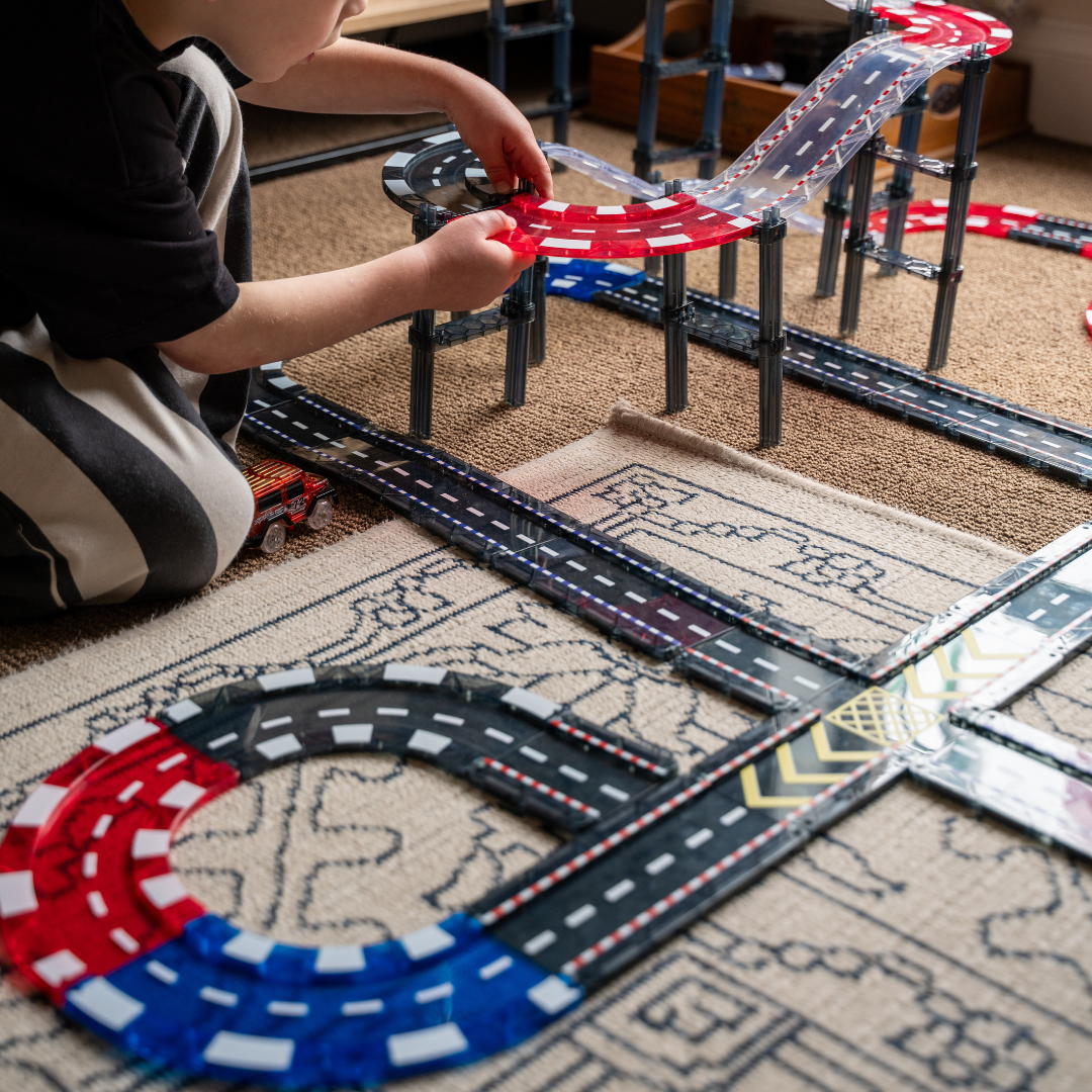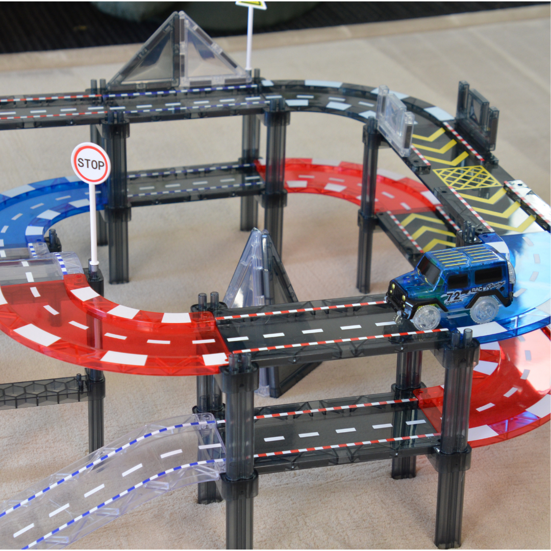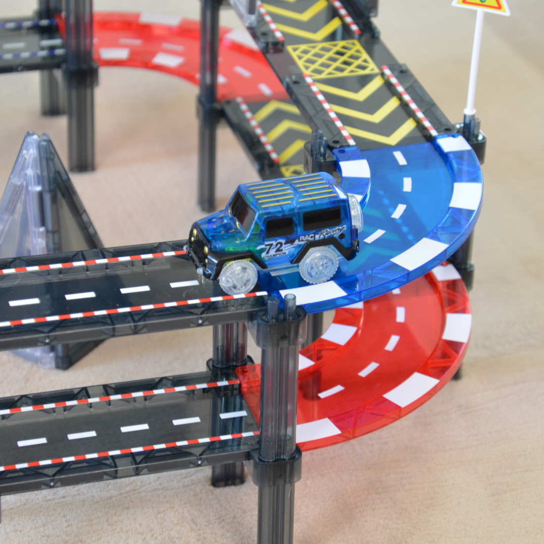 Building with your magnetic race tracks encourages kids to understand the design process by planning, testing, and improving their creations. Through trial and error, they also learn the importance of constructing sturdy and safe structures.